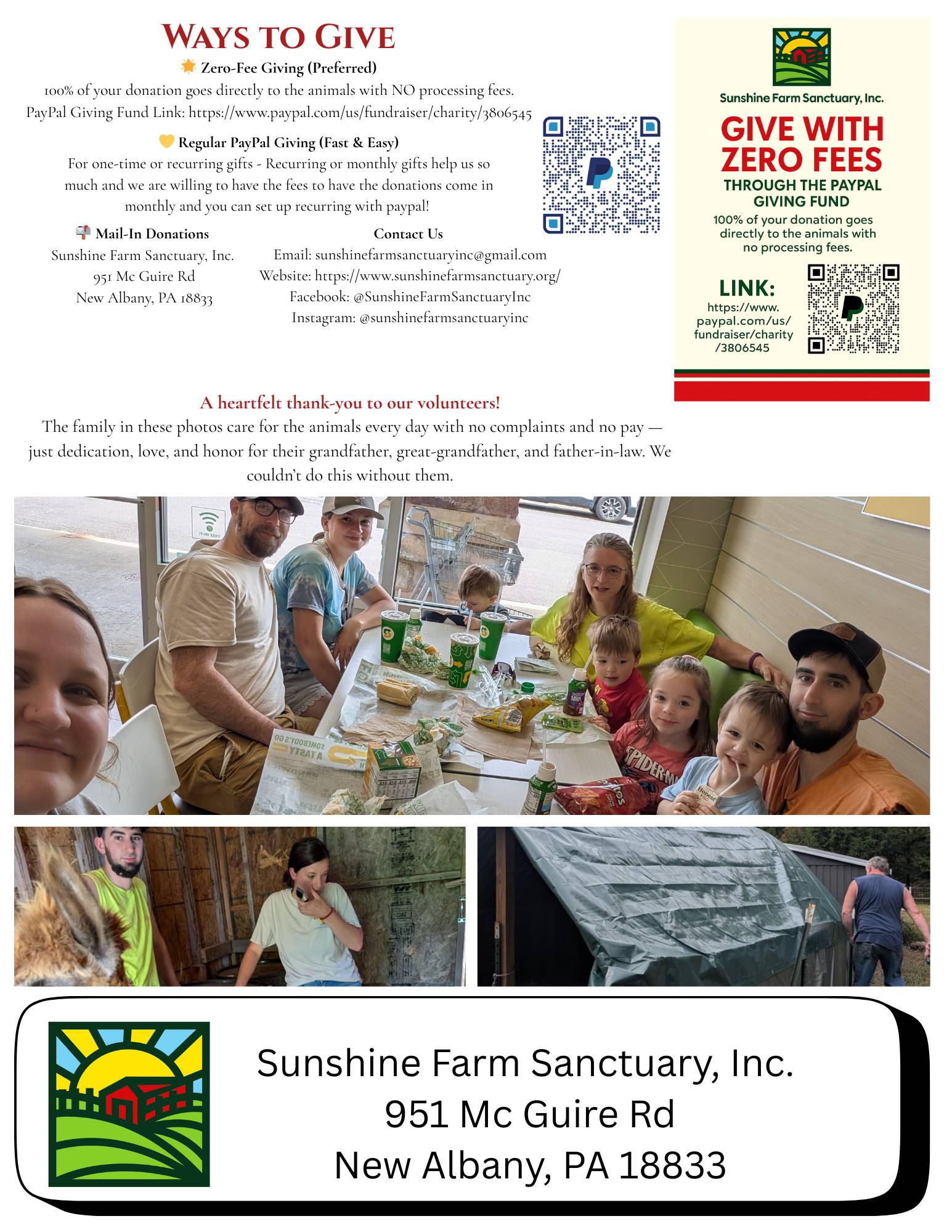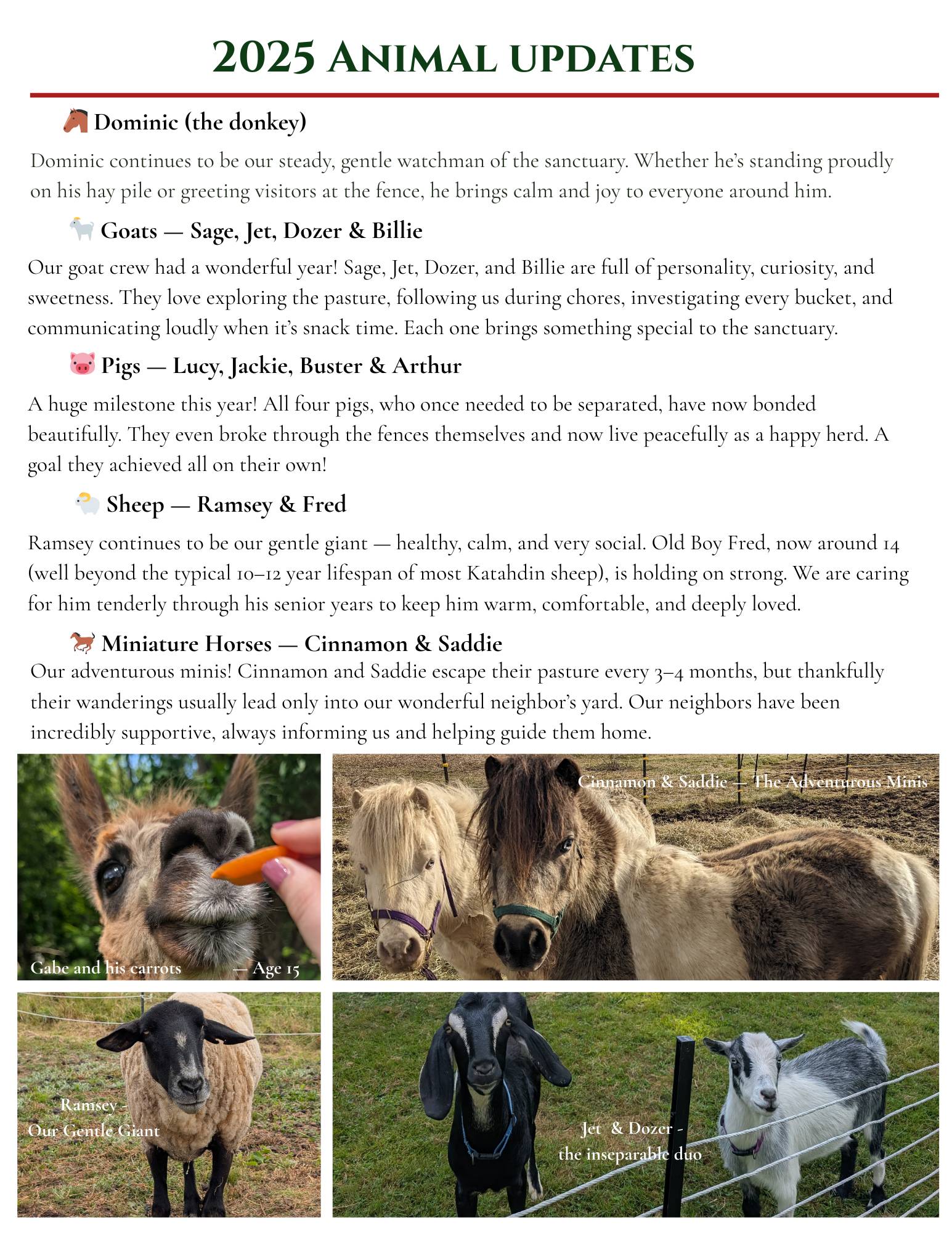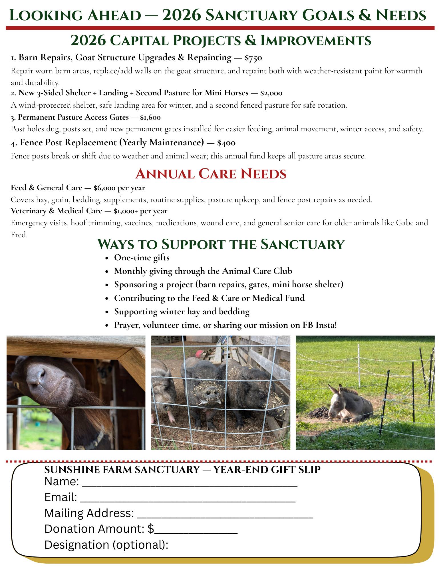 Unwrap the Joy Explore Our Amazon Wish List and Share the Magic Today Deck the Halls with Giving Browse Our Christmas Wish List and Be a Holiday Hero! Amazon Wish List I hope this message finds you well! At Sunshine Farm Sanctuary, we are always working hard to care for the animals, and your kindness makes it all possible. We’ve recently created an Amazon Wish List to help meet some of our needs and some wants for the Animals. The items on this list directly support the animals we serve....